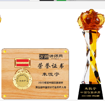 恭喜朱悅寧老師榮獲萬師講師網2023年度中國百強講師 暨第五屆中國培訓行業標桿人物