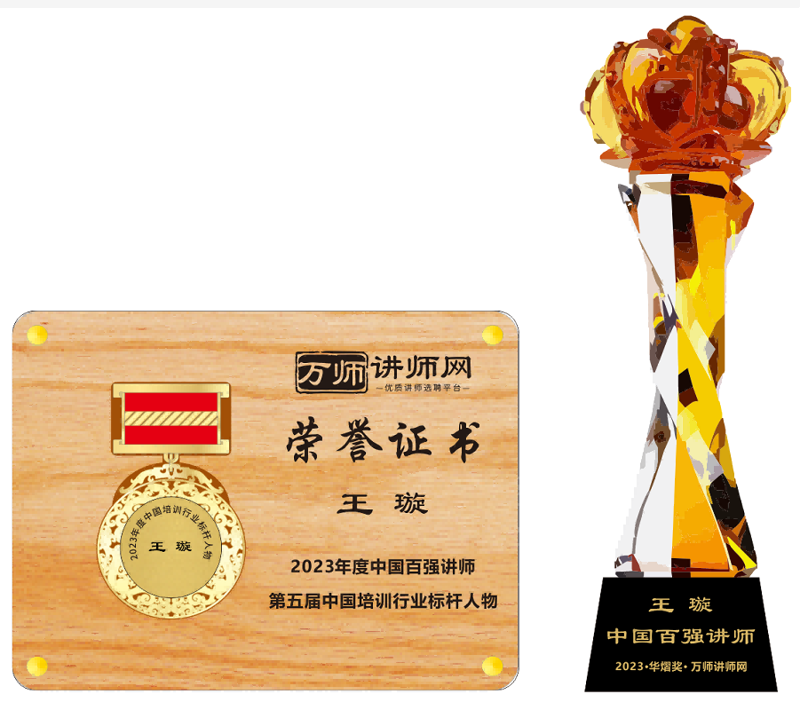 恭喜王璇老師榮獲萬師講師網2023年度中國百強講師 暨第五屆中國培訓行業標桿人物