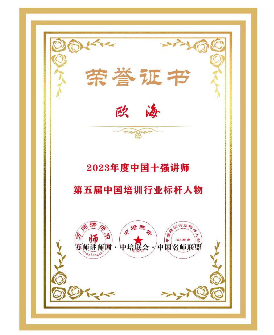 恭喜歐海老師榮獲萬師講師網2023年度中國十強講師 暨第五屆中國培訓行業標桿人物