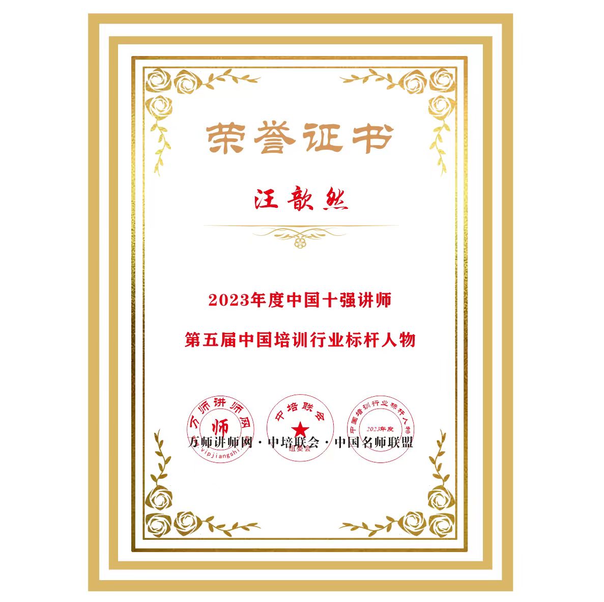 恭喜汪歆然老師榮獲萬(wàn)師講師網(wǎng)2023年度中國(guó)十強(qiáng)講師 暨第五屆中國(guó)培訓(xùn)行業(yè)標(biāo)桿人物