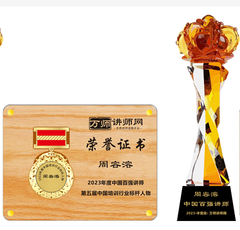 恭喜周容溶獲萬師講師網2023年度中國百強講師 暨第五屆中國培訓行業標桿人物