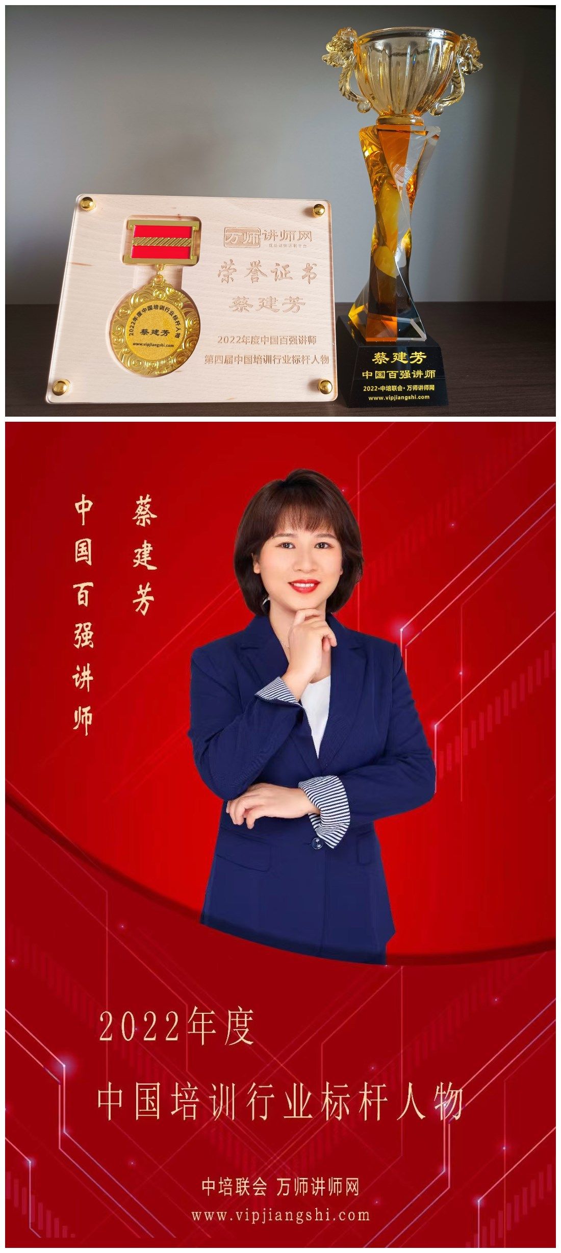 恭喜蔡建芳老師榮獲2022年度中國百強講師 暨第四屆中國培訓行業標桿人物