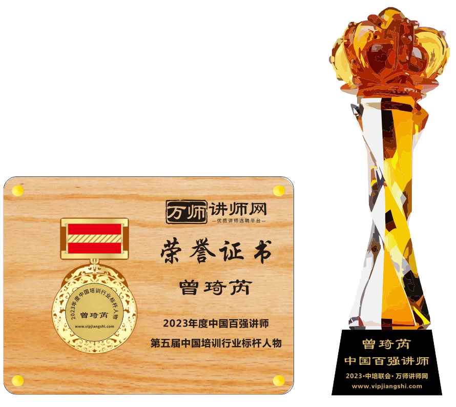 恭喜曾琦芮老師獲萬師講師網2023年度中國百強講師 暨第五屆中國培訓行業標桿人物