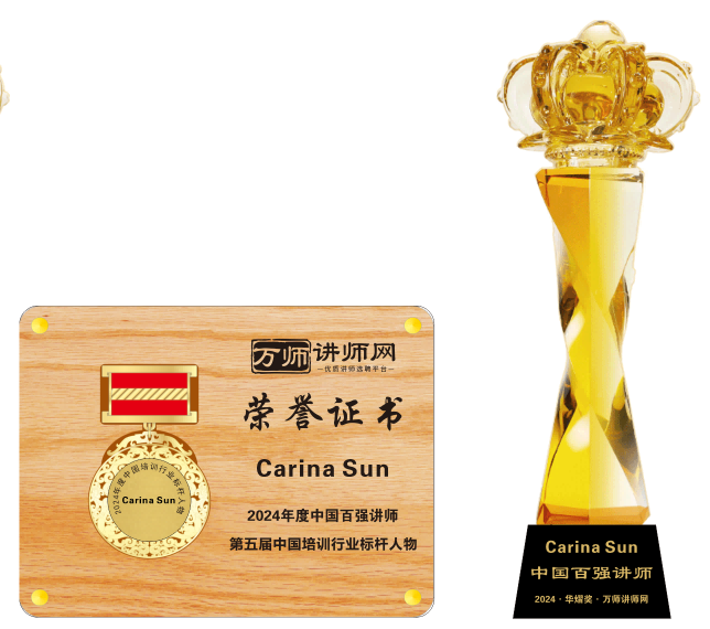 恭喜Carina Sun老師獲萬師講師網2024年度中國百強講師 暨第五屆中國培訓行業標桿人物